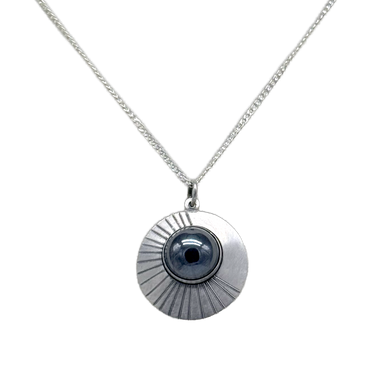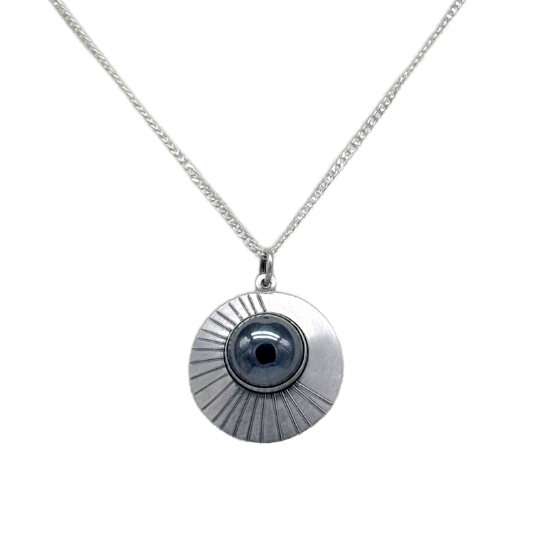 Hematite has long been valued across cultures for its purported grounding and stabilizing properties. Historically revered by ancient civilizations for addressing blood-related concerns and reducing inflammation, this stone is now sought by modern practitioners for its reputed ability to dispel anxiety, enhance mental clarity, and restore physical vitality. The mineral's unique self-healing characteristic—where surface scratches can fade when gently buffed—adds to its mystique. Contemporary use centers on emotional balance, confidence building, and alleviating fatigue-related conditions including insomnia and jet lag. This disc pendant combines hematite's traditional metaphysical appeal with a refined geometric design, making it a meaningful addition to any intentional jewelry collection.