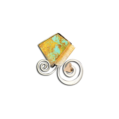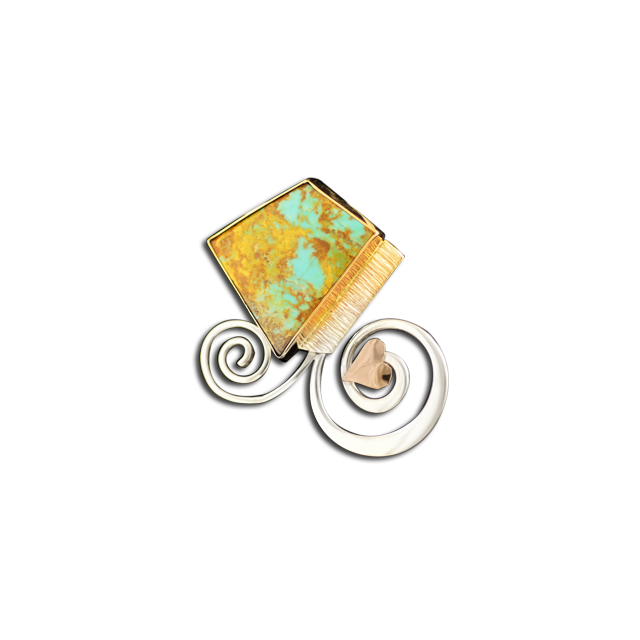 Sterling swirls pair naturally in a balanced stone and leaf design, with a slice of hand-patterned 14k gold.